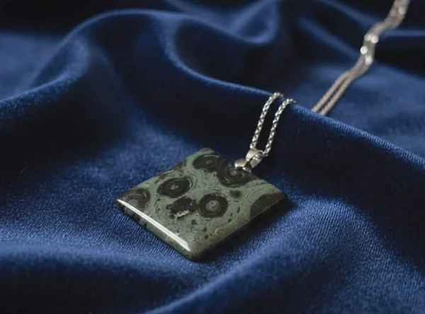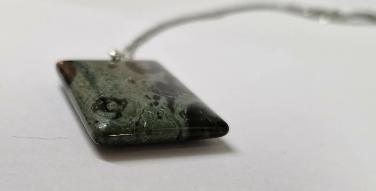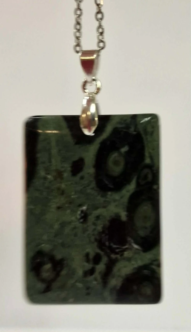 Looduse maalitud mustrid: Need tumerohelised ja mustad ringid ei ole tehases peale trükitud. See on miljonite aastate jooksul kivistunud looduse meistriteos (Kambamba jaspis koosneb iidsetest kivistunud vetikatest ja mineraalidest).