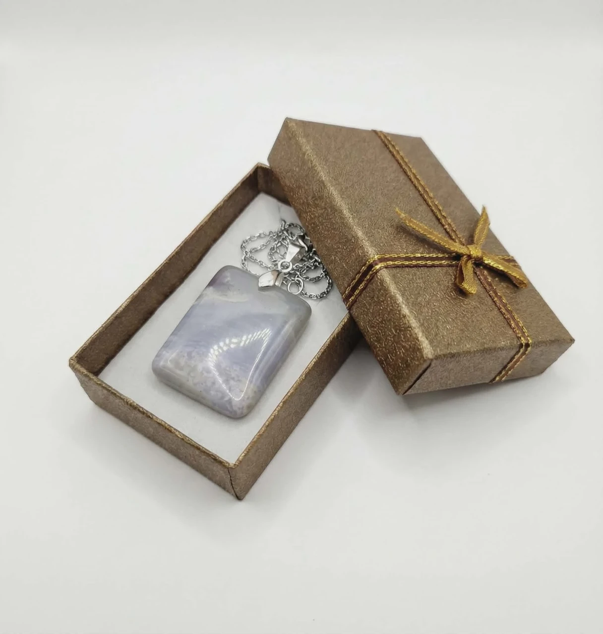 Komplekti info: Lihtne ja elegantne Et hoida fookust kivi enda rahustaval energial, on see kinnitatud lihtsale ja klassikalisele ketile ning tuleb elegantses kinkekarbis.