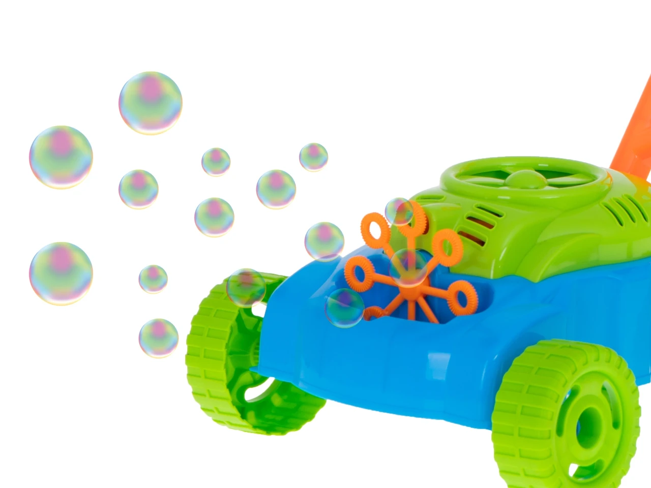 В комплекте: 1x газонокосилка, 1x бутылочка специальной жидкости для мыльных пузырей